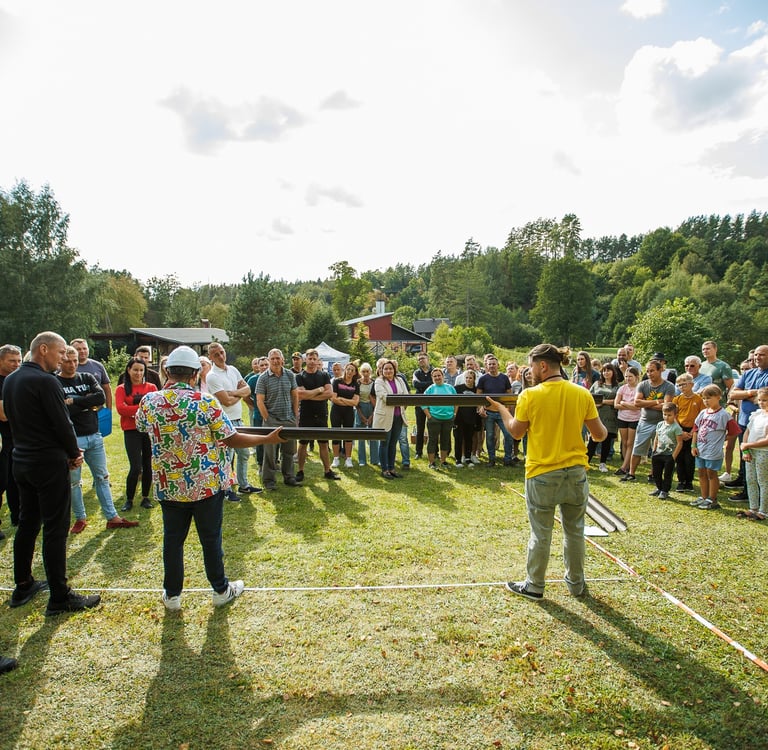 Siūlome dinamiškas ir įtraukiančias rungtis, pritaikytas skirtingiems fizinio pasirengimo lygiams. Dalyviai išbandys savo jėgas sportinėse estafetėse, strateginiuose iššūkiuose bei orientacinėse užduotyse, kur reikės ne tik greičio, bet ir sumanumo. Kiekviena užduotis skatina efektyvų bendravimą, komandinį darbą ir, svarbiausia, garantuoja puikią nuotaiką!
